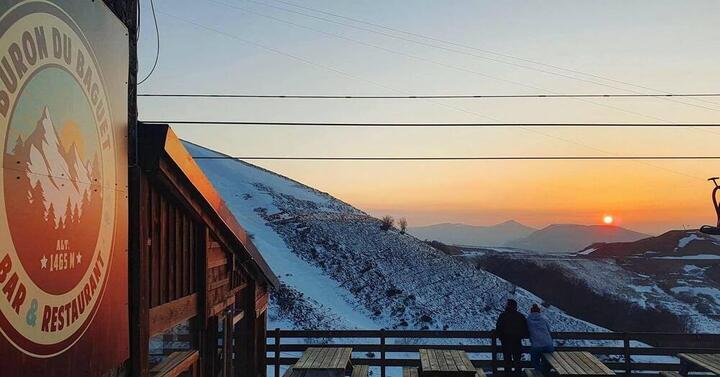 A la carte: planches mixte de charcuterie et de fromages du cantal, truffade, jambon d'auvergne affiné, croque monsieur montagnard, Lasagnes, pavé de boeuf Salers...