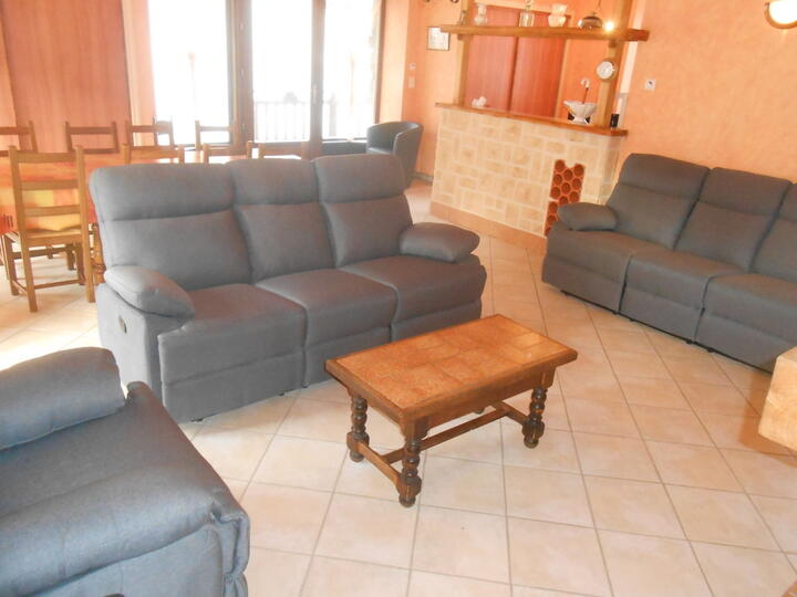 Couchages : 3 chambres avec chacune 3 lits 140, 1 chambre avec 2 lits 90 superposés, 1 lit bb.