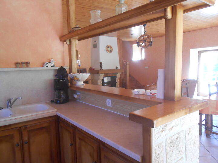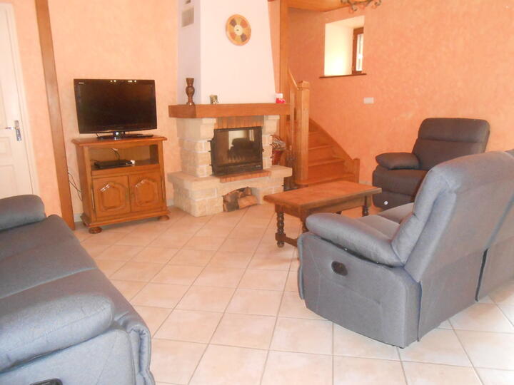 Séjour avec cheminée, TV écran plat at accès wifi, coin cuisine aménagée, une chambre avec salle d'eau privative. Au 1er étage : 3 chambres et sallede bain, wc indépendant.