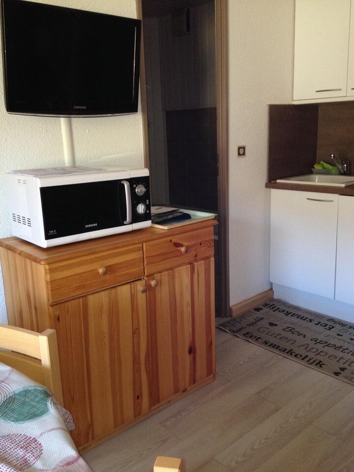 Appartement de 30m² avec balcon situé en centre station, face aux pistes. 4ème étage avec ascenseur. Vue sur les pistes. Exposition sud-est.