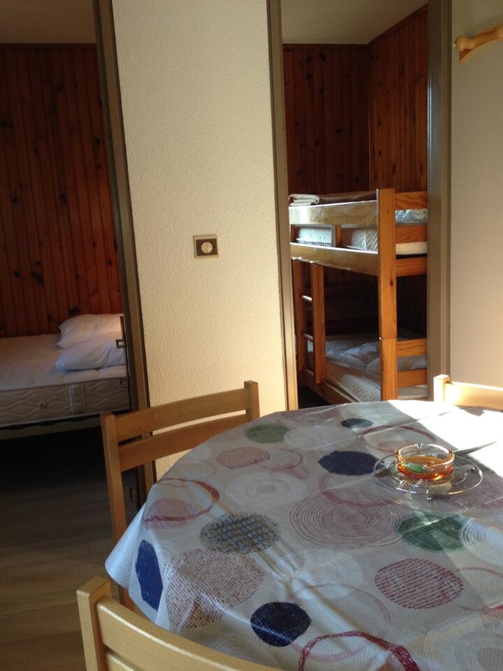 Couchages : 1 chambre avec 1 lit 140, 1 chambre avec 2 lits 80 superposés, 1 clic clac dans le séjour.