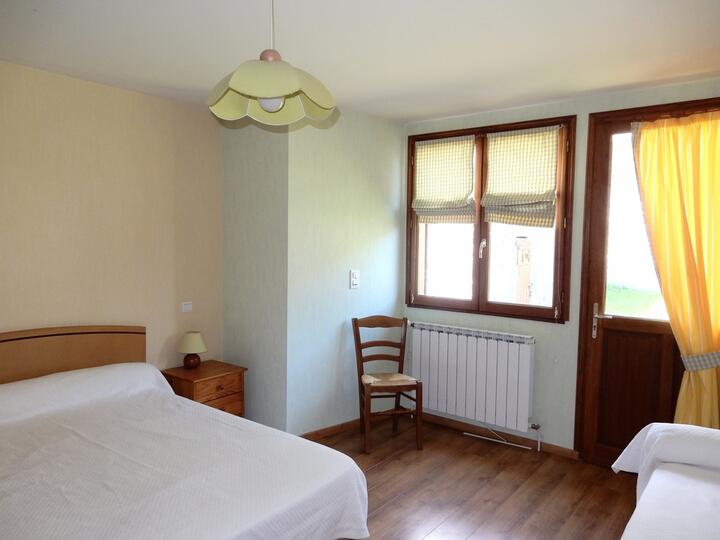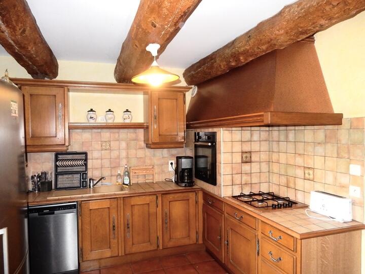 Grand séjour cuisine avec cheminée cantou, 5 grandes chambres (dont 1 accessible personne à mobilité réduite), 2 salles de bain (dont 1 avec wc accessible personnes à mobilité réduite), wc à l'étage, salle de jeux, 3 TV.