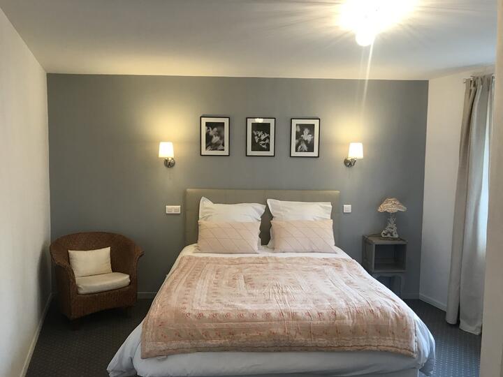 Chambres de charme équipées de salle de bain et WC privatifs, accès WIFI gratuit (fibre) dans tout l'établissement.