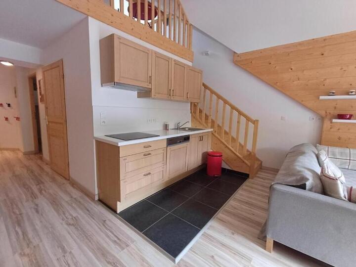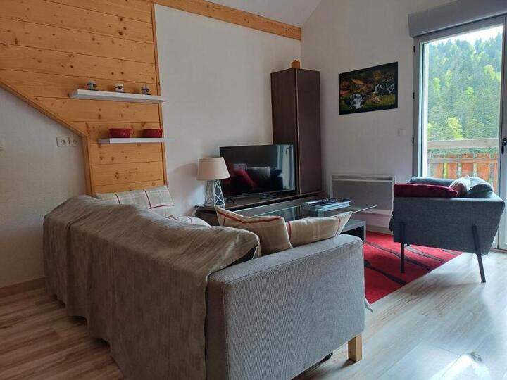 Grand duplex lumineux pour 6/7 personnes à Font d'Alagnon. Au 3eme et dernier étage, un balcon exposé plein sud vous permettra d'admirer une vue dégagée sur la montagne.