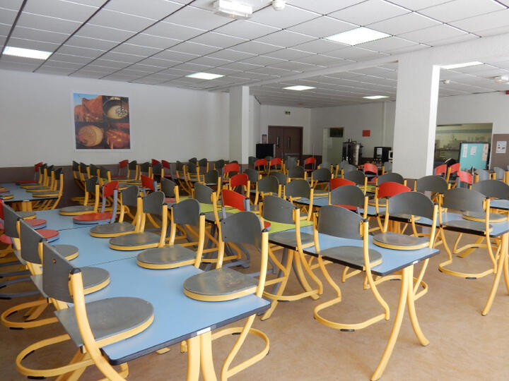 Restauration en self-service, terrasse panoramique, salle de classe, cyber espace, salle polyvalente avec matériel pédagogique et informatique.