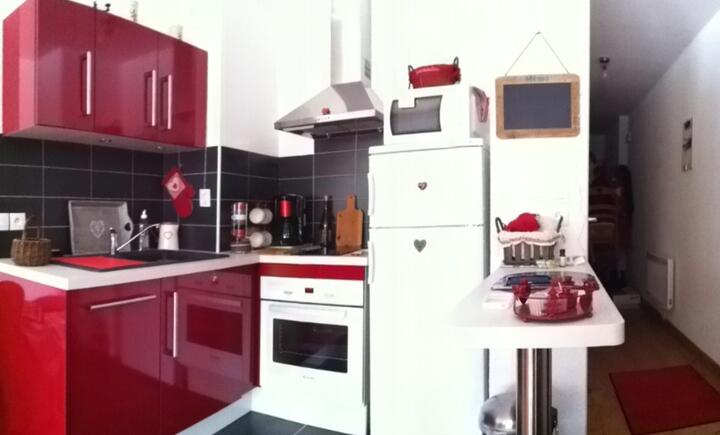 Equipements : plaques vitro, réfrigérateur, four, micro-ondes, lave vaisselle, lave linge.Télévision, wifi.