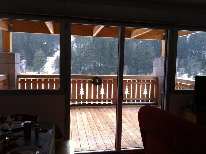 Grand appartement de 59 m² au pied des pistes à Font d'Alagnon, meublé style montagne.