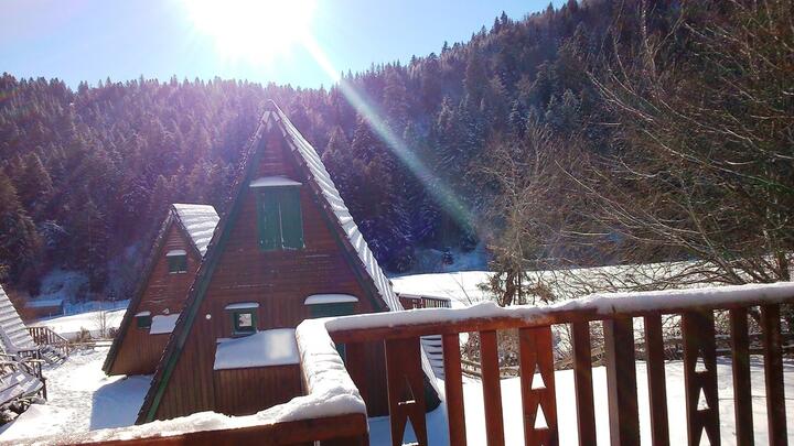 Au coeur du Cirque de Font d'Alagnon et de l'espace nordique, à proximité des télésièges de Masseboeuf et Rombière, chalet bois exposé plein sud avec terrasse.