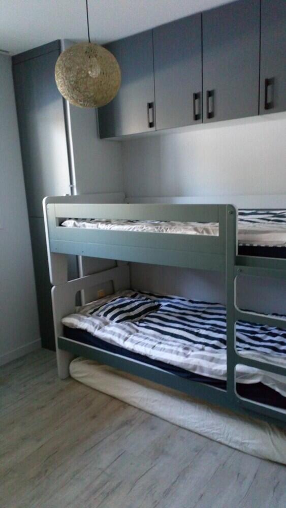 Couchages : 1 canapé 140 dans le séjour et 1 lit superposés triple dans la chambre.