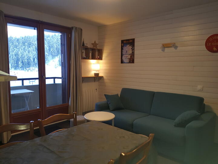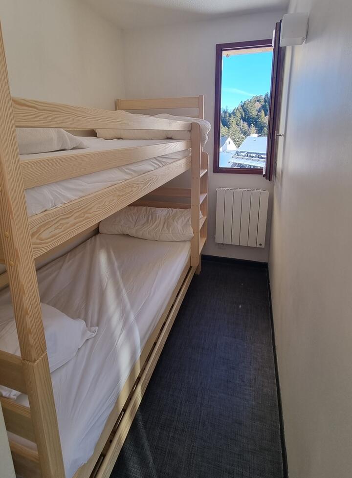 Séjour sur balcon face à l'ESF. Cuisine équipée, lave vaisselle, hotte, four multi-fonctions, réfrigérateur zone longue conservation. 1 chambre lit 140x190, 1 chambre lits superposés, fenêtres et volets bois. Salle d'eau, douche profonde pour baigner un enfant. Toilettes séparées avec lave-mains intégré.
