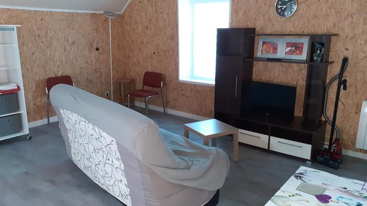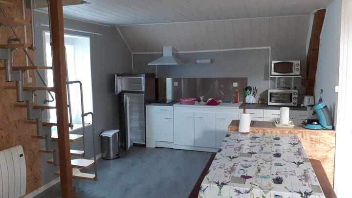 Studio de 45 m2 avec mezzanine. Meublé situé au 1er étage, entrée indépendante. Couchages : 1 lit 2 personnes, en mezzanine 1 lit 1 personne. A 5 km de la station du Lioran.