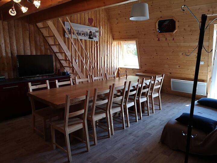 Mezzanine avec 4 couchages (enfants préférable), salle de bain, WC, cuisine tout équipée et terrasse commune avec l'Oustal.